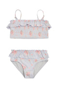 Our little loves are ready to soak up the sun in our Penni Swimsuit. This pretty two-piece features a charming top with a ruffle detail and smocking for a playful texture, while the bottoms feature a matching ruffle detail.