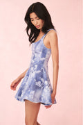 Introducing the Piero Dress. This denim mini dress arrives with a washed, hand-dyed look featuring a floral print all over. The bustier dress is flirty and playful with flattering princess seams at the body, a scoop neckline, and an A-Line mini skirt with pleated details. This piece is finished with a center back zipper.