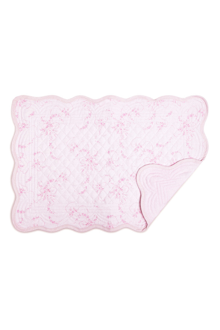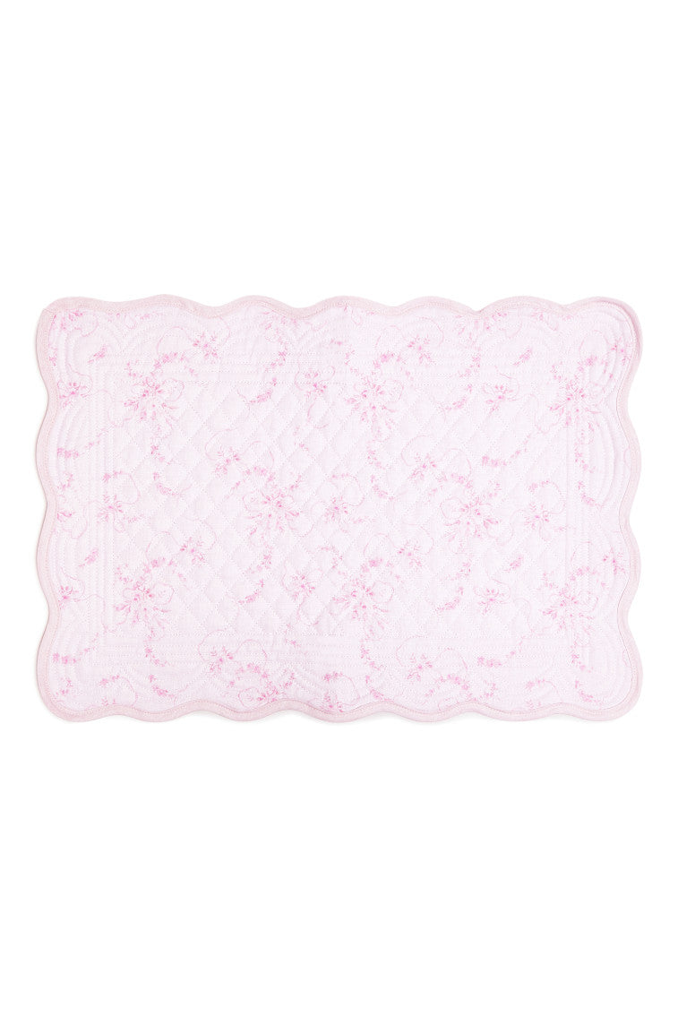Add a pretty touch to your tablescape with these must-have place mats. Dreamt up with vintage-inspired and nostalgic details, these reversible, linen place mats feature an heirloom floral print on one side designed to match our printed napkins, while the other side is a hand-dyed pink designed to match the table runner and all color matched back to the full collection of table linens. Arriving in a set of four, each quilted mat features scallop edges with a binding for a vintage-inspired finish.
