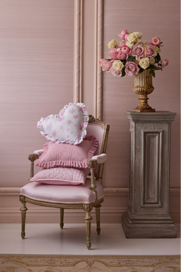 Dress up your space with our Pointelle Knit Throw Pillow. This chic, new homeware essential designed from 100% cotton fabric, features a timeless heart-and-bow pointelle and elevates any room. Made-to-match our Pointelle Throw, the pillow is finished with a ruffle trim.
