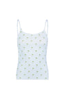 This crew neck long sleeve top with scallop neckline features a rib knit with natural stretch. The pre-washed British heritage knitting shows a palm tree print.