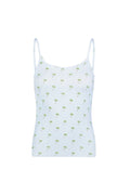 This crew neck long sleeve top with scallop neckline features a rib knit with natural stretch. The pre-washed British heritage knitting shows a palm tree print.