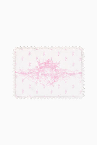 Give your table the LoveShackFancy touch with this pretty table runner featuring a trimmed edge and a vintage-inspired pink print with a scallop lace trim.