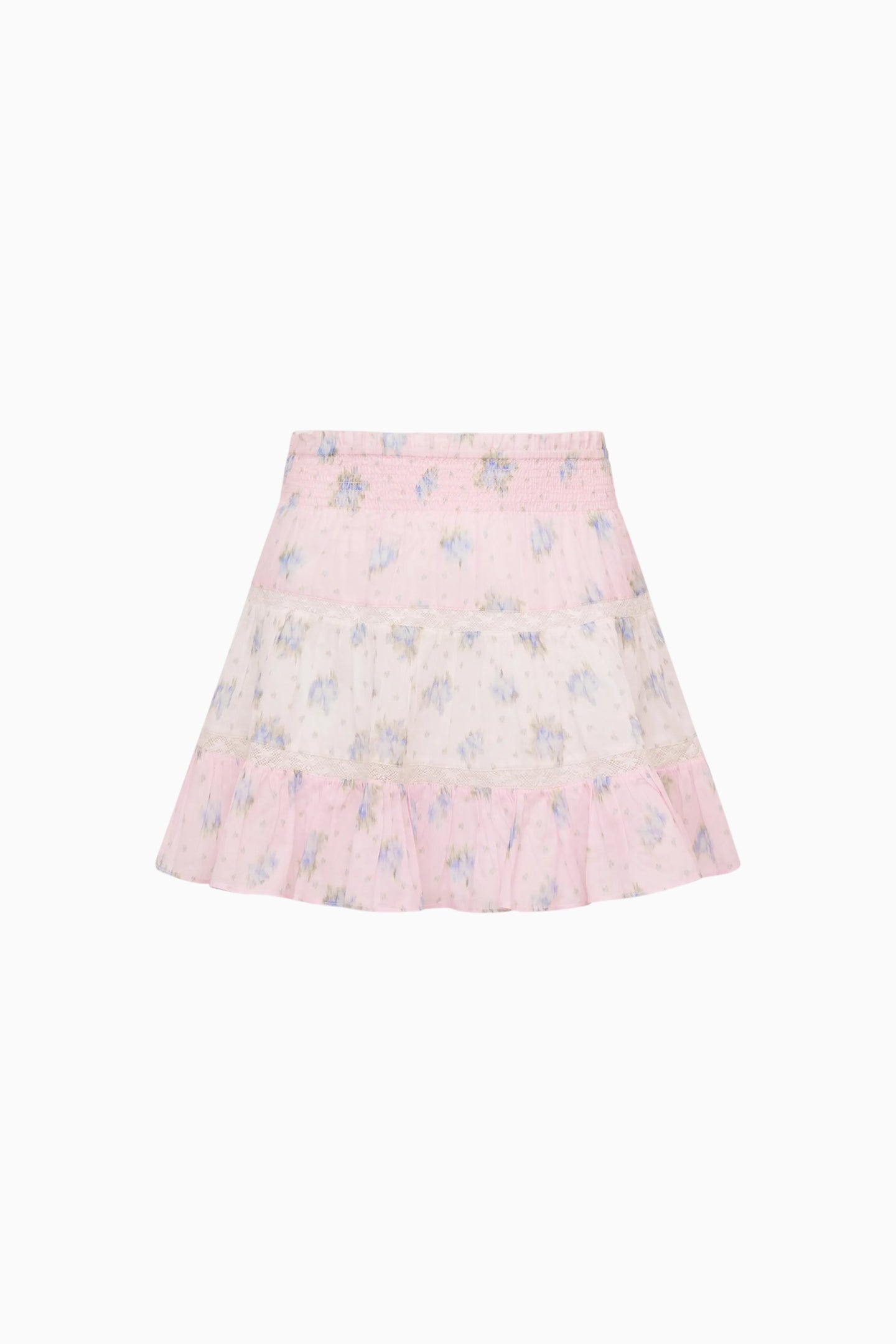 Pretty in pink in the Raf Skirt. This airy mini features our signature prints with an elasticated waistband, three tiers, and tiny ruffle details.