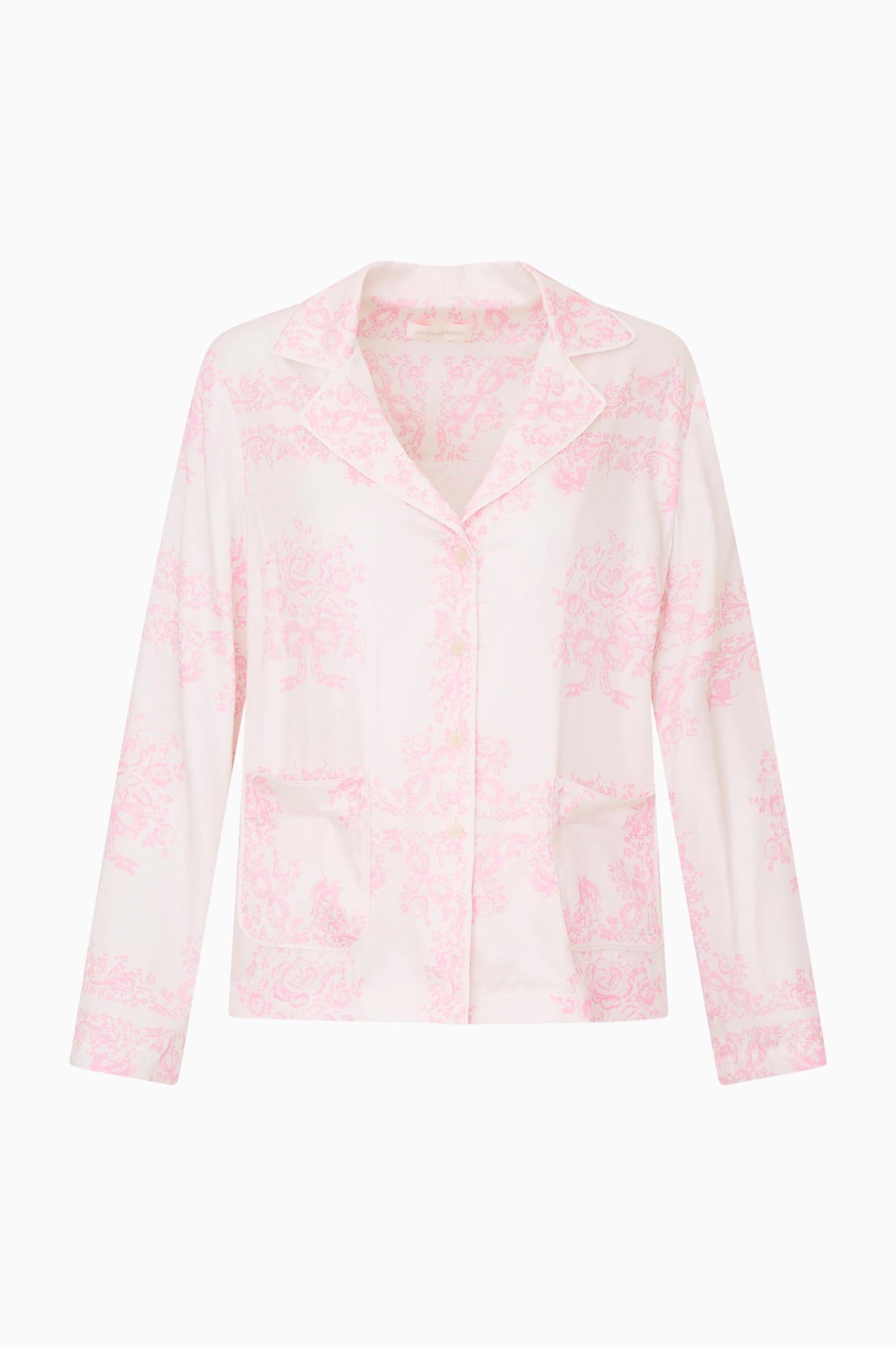 The Renetta Shirt blends relaxed, effortless loungewear with vintage-inspired charm. Designed with long sleeves and a notched camp collar, this loose-fit silhouette features our signature bandana toile print and subtle front pockets for a refined, classic touch.