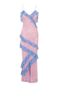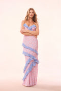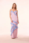 Our best-selling Rialto Dress returns as part of our Re-Edition Collection. We brought back our original, Windsor Rose print to adorn everyone’s favorite party dress. This must-have maxi stuns with overlapping, asymmetrical ruffles at the neckline that continue to descend through the entire skirt. Slightly fitted, this dress features a sexy silhouette.