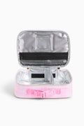 Introducing the Rodgers Lunch Box, as part of our limited-edition collaboration with STATE Bags Just in time for the holidays with a spirited metallic pink fabric, this lunch box keeps their food fresh and organized with a fully insulated main compartment featuring a detachable divider, a zippered mesh pocket for silverware or an ice pace, and see-through pocket adds for notes or pictures. Fits perfectly inside the Kane Backpack for easy carrying.
