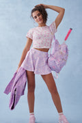 Our best-selling Rubin Tee returns in our signature floral prints. Our hero shaped, cropped tee comes in a stretch fabric. This girly muscle tee has a loose circle neck, cap sleeves, and a cropped bottom hem. It’s the perfect everyday essential.