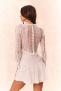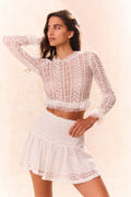 Romance found in the Rubyanne Skirt. This pretty, A-line mini features a soft mesh wash to give it a vintage look and feel. Mini pleats are stripped throughout with sheer, crochet lace details all over. This skirt includes a zipper for closure.