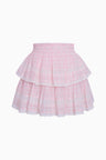 Our best selling Ruffle Mini Skirt returns for the season with a gingham dyed yarn on organic cotton. She features intricate inset lace trims and allover pintuck details. The elasticated waistband and double lining offers flexibility in comfort and styling. Tiered ruffles exude effortless femininity. The mini is finished with a frayed, raw hem for added playfulness.