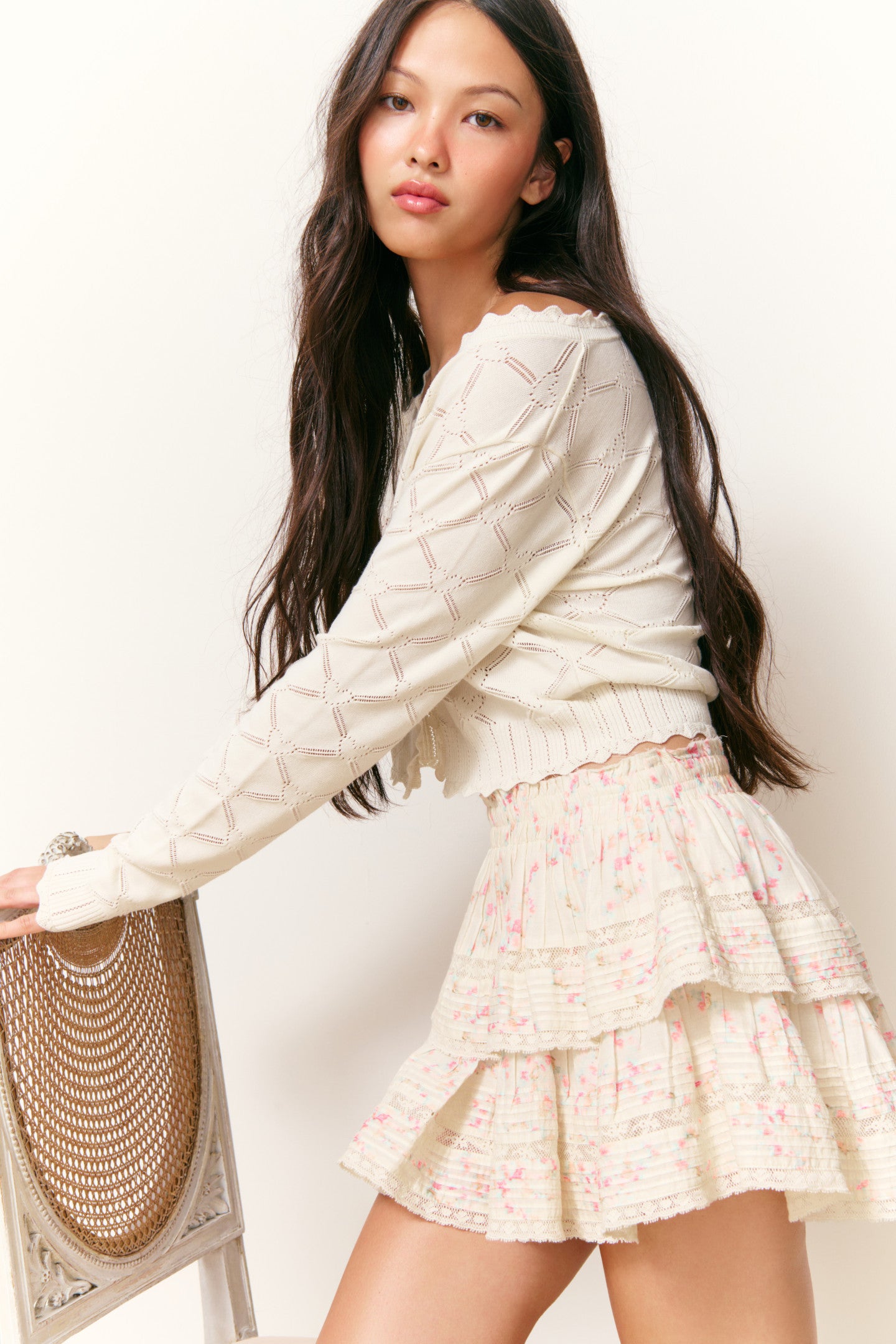 Our best-selling Ruffle Mini Skirt returns for the season with organic cotton voile fabric arriving with our signature bow fleur print reimagined into tiny ditsy florals printed all over. She features intricate inset lace trims and allover pintuck details. The elasticated waistband offers flexibility in comfort and styling. Tiered ruffles exude effortless femininity. The mini is finished with a frayed, raw hem for added playfulness.