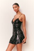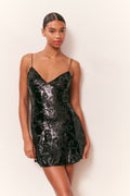 Step into the spotlight with the Sabeline Dress, a bodycon midi that glows with layered Luna Rosa Beaux sequins. Designed with an open V-neckline, empire waist, and delicate spaghetti straps, it hugs the figure while keeping a light, celebratory feel. A hidden back zipper ensures a flawless fit, making this dress a sparkling choice for parties and evening moments that call for effortless glamour.