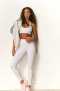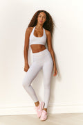 Meet the legging you’ll live in. Our new Santiana Legging is designed with a flattering high-rise waistband and a sleek, wide side panel that runs the full length for a streamlined look. Crafted with cover stitch detailing throughout her seams, she blends comfort, performance, and a touch of LoveShackFancy charm. Perfect for pairing with our Dierdra Bra — from morning workouts to weekend lounging.