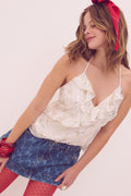 Flirty and feminine in the Satin Ruffle Halter Top from our exclusive, limited-edition PINK x LoveShackFancy collaboration. Designed from a soft satin fabric, this pretty piece is cut on the bias and effortlessly chic. Pair with the matching Satin Ruffle Mini Skirt.