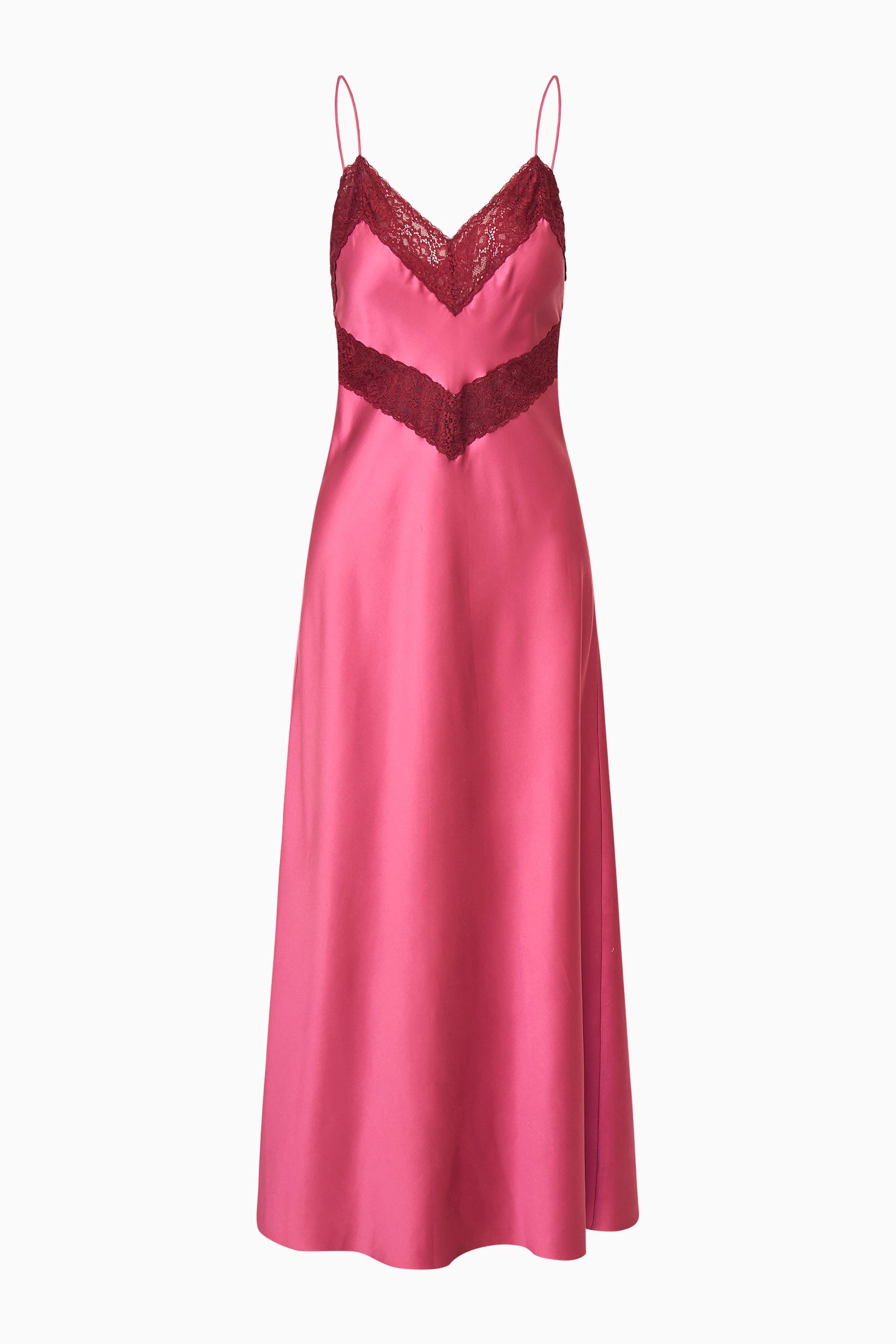 Everyone’s favorite Serita Dress is back and flirtier than ever. This time, she arrives in a medium weight silk charmeuse fabric giving this piece a drapey, yet elevated wear. The stunning slip dress features gorgeous contrasting lace at the neckline and waist giving this piece a feminine silhouette. The lace is backed with a bit of chiffon for a sexy finish.