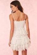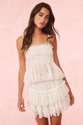 Daytime dreams come true in the Shailo Skirt. This ethereal mini debuts with a lovely cotton fabric featuring a beautiful medley of custom-made floral eyelets from large scale scallop eyelets to smaller, ditsy eyelets. Airy and breezy, this piece begins with a smocked hip yoke for easy pull-on which sits above a flirty, two-tiered ruffle eyelet skirt. Pair with the Condie Top for a full set.