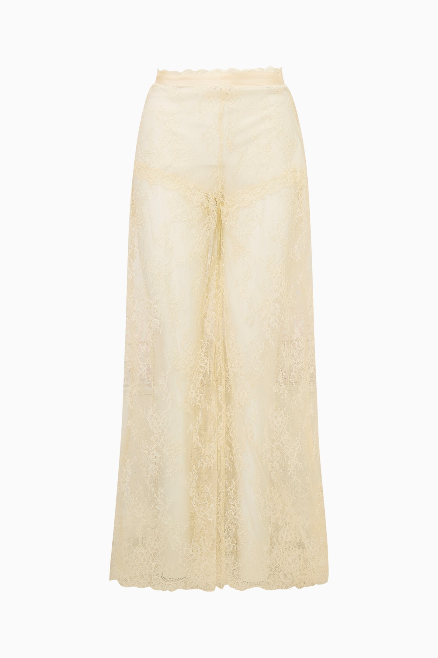 Make a statement in the Sigrid Pant. These Bohemian-inspired wide-leg palazzo pants are feminine and effortlessly cool with vintage-inspired lace all over. Slightly sheer, the fashion-forward bottoms feature little boy shorts designed from a chiffon fabric. These are finished with a zipper.