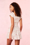 Introducing the Siona Dress. This charming mini debuts with a printed cotton fabric featuring a new floral that’s extra dreamy for the spring. The dress features a smocked top and bodice that releases into an airy, a-line skirt. Easy and comfortable, the dress just pulls on with elastication and features laces throughout the body and the cap sleeve.