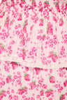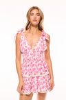 The Soira Dress returns as part of our Heirloom Print Capsule featuring our signature Rose Heart print with charming berries made-to-match with our Hair & Body Perfume Mists. This charming mini is designed with a delicate cotton voile fabric featuring ditsy metallic gold stars embroidered all over. Beginning with a deep v-neck with a self-tie detail the dress descends to a smocked waist. A sweetheart trim lines the neck while eyelet hearts adorn the two-tiered skirt.