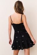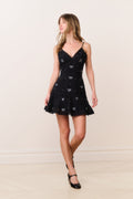 Our best-selling Solbina Dress is reimagined for the holiday season with a festive spirit. This charming dress returns with a cotton voile featuring beautiful tossed bows adorned throughout made from heat-fixed crystals. The classic mini begins with thin spaghetti straps above a v-neckline that flows to an empire waist with a slight cinch that releases into an airy, ruffle skirt. Smocking at the back gives this piece extra elastic and comfort.