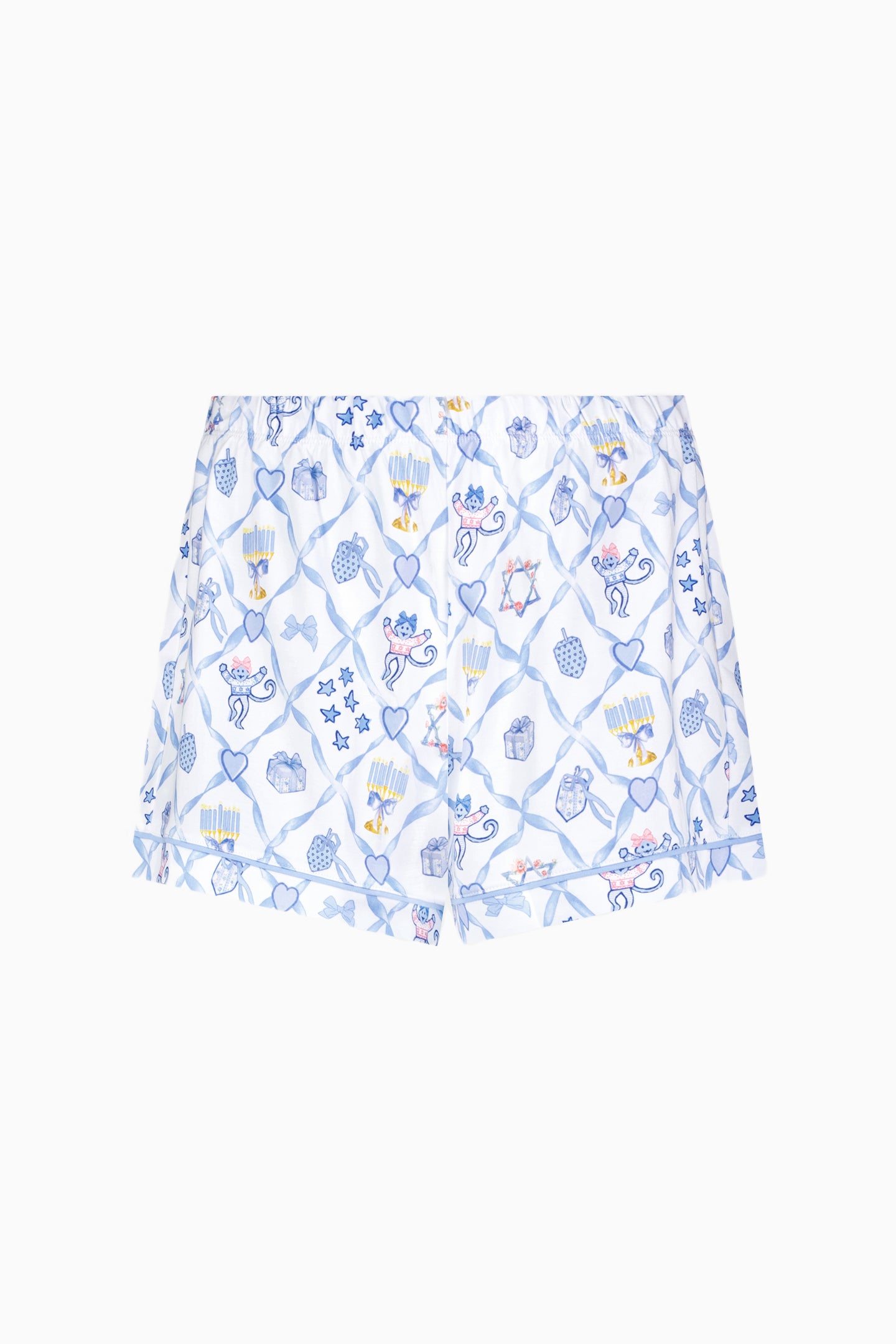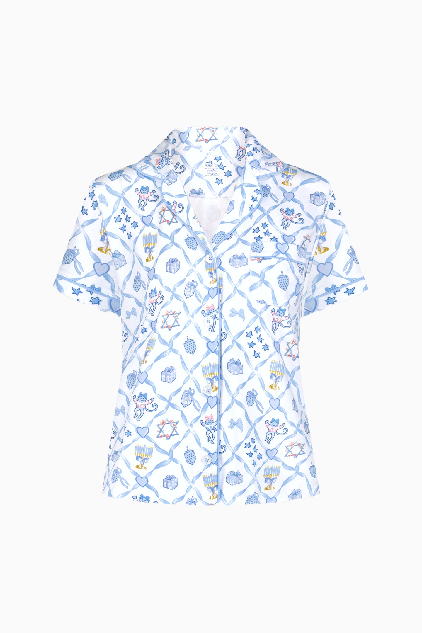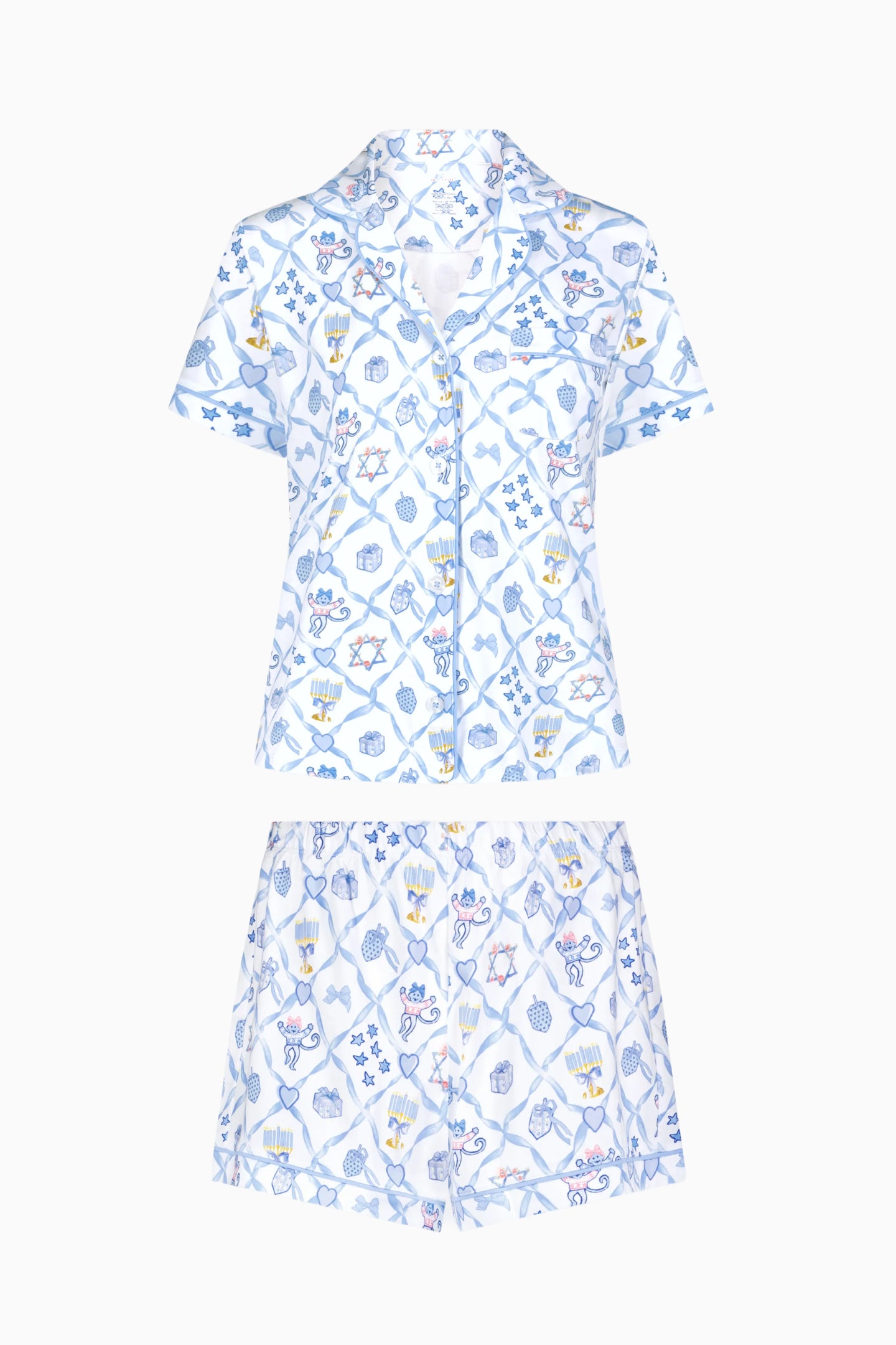 Get in the festive spirit with these Hanukkah-inspired shortie PJs from our LoveShackFancy x Roller Rabbit collab. Made with Roller Rabbit’s signature satiny soft pima interlock cotton and adorned in our most magical print yet, these pajamas are a must for the holiday season.