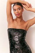 Start the party in the Stasia Dress. This show-stopping, column dress is designed from a sequin sheathing fabric featuring shimmering sequins all over. Glitter is added all over to the sequins to give this piece that extra LoveShackFancy sparkle. Wear to your next event or holiday party.