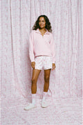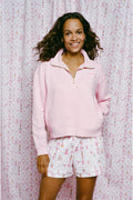 Stay cozy and festive in the Half Zip Sweatshirt from our LoveShackFancy x Roller Rabbit collab. This easy piece features our new, Christmas-inspired pink print, designed for the holiday season.