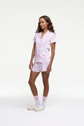 Deck the halls and get in the festive spirit with these Christmas-inspired shortie PJs from our LoveShackFancy x Roller Rabbit collab. Made with Roller Rabbit’s signature satiny soft pima interlock cotton and adorned in our most magical print yet, these pajamas are a must for the holiday season.