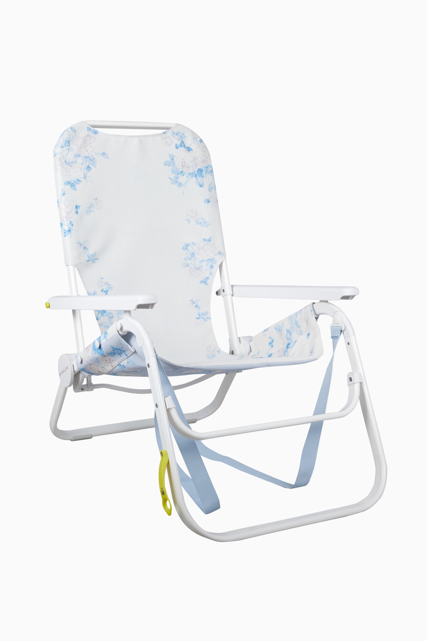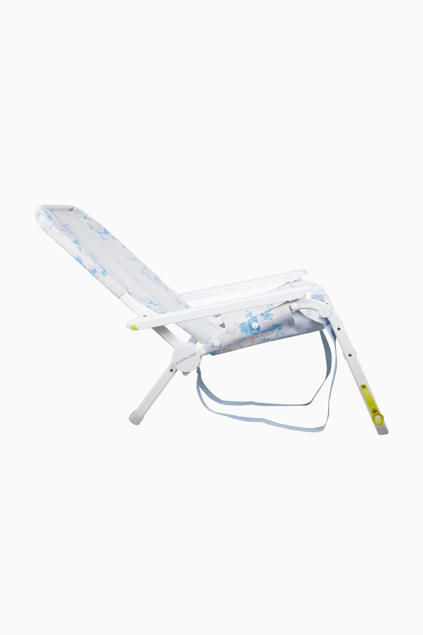 Sit pretty all summer on these playful LoveShackFancy x SUNFLOW beach chairs. These limited-edition Shore Thing Chairs get the LoveShackFancy touch with our signature Everblooming Rosettes and Blooming Heirloom prints. Low and compact, the chair features a telescoping frame to open full-sized on the beach and to close compactly for transportation and storage.