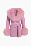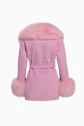 Introducing our Mini Jojo Cashmere Shearling coat. Made for the princess in your life. Features detachable shearling trim collar and sleeves, exterior pockets and pearl buttons with crystal-embellished details. Matching belt also included.