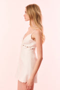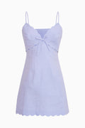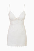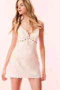 Effortlessly chic in the Sydow Dress. Designed for the summer, this timeless mini dress is made from a crisp linen fabric for easy and comfortable wear. With a fitted silhouette, the dress features thin spaghetti straps, playful cut outs at the top, scallop edges that kiss each other at the waist and a center back zipper.