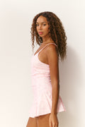 Our newest active-meets-feminine silhouette, the Sylvie Dress, is made for movement with a romantic twist. Designed with delicate spaghetti straps (fully adjustable) and shirring at the center front, she features cover stitch detailing along princess and empire seams for a flattering fit. A lower waistline gives way to a sweet, flounced hem, while the built-in jersey lining, breathable mesh, and interior shorts with pockets make her as functional as she is charming. Complete with removable bust cups for customizable comfort — perfect for court days, coffee dates, and everything in between.