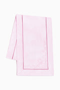 Put on the pretty with our vintage-inspired table runner. This table linen effortlessly elevates your tablescape with a stunning hand-dyed fabric. The runner features a double layer self, a latter trim, and charming bow embroidered on each corner. Pair with our Tablecloth for a coordinated look.
