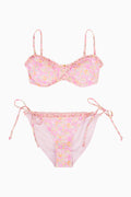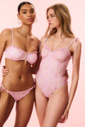 Introducing our latest capsule collection Made with Liberty Fabrics designed into our favorite elevated pieces. The Tallie Bikini with Liberty’s Corsica fabric with a vibrant floral print all over. This feminine swimsuit features thin spaghetti straps, underwire at the bust cups, and a sweet, tiny bow detail at center front on the top.