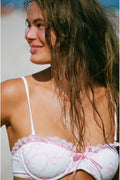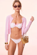 Introducing the Tallie Bikini. This feminine swimsuit features our signature bow print all over and tiny ruffle detailings. She’s finished with a sweet, tiny bow detail at center front on the top.
