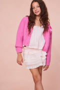 Our girls keep it cozy and cute in our favorite knit, the Teisha Cardigan. This must-have layer is perfect over any look and adds a warm and loving touch to your look.