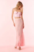 Introducing the Tesleigh Skirt. Arriving in a lightweight viscose chiffon fabric, this pretty maxi skirt features an Italian-inspired polka dot print. Flirty and feminine, the evening piece has a mermaid silhouette with a slightly slim fit, and a fixed waist.