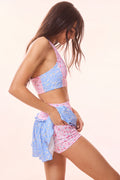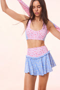 Feeling fit and flirty in the Vanina Skort. Fun and functional, this skort arrives with our ditsy floral mix print. A must-have essential, the easy skort features a high waistband, ruffle tiers at the yoke edges and built-in shorts. The interior short lining is designed with a breathable and lightweight mesh fabric. Ideal for any high or low impact workout from running to hiking to pilates and everything in between, this skort is designed to do it all. Pair with the Dierdra Bra for a full set.