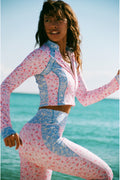 For the girls on-the-go, our Veda Jacket arrives. This athleisure layer elevates your look and is the perfect essential for a cool weather workout or running errands around town. Featuring a ditsy floral print mix paneling and breathable fabric, she’s the jacket that goes with us everywhere.