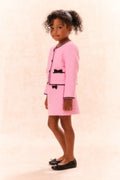 Preppy and posh in the Verita Skirt. This pretty, made-to-match skirt stuns with a crisp, tweed fabric, contrasting details, and tiny bows on the faux pockets. Pair with the Mahoney Jacket for a full set.