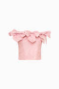Romantic and statement-making, the Winston Top captures the magic of a holiday evening. Designed from rich taffeta fabric, this cropped off-the-shoulder silhouette features princess seams for a beautifully sculpted fit. Along the neckline, gorgeous bows are delicately placed, adding whimsical charm and drama. The elastic armbandsensure comfort and flexibility beneath the bows, while a hidden side zipper allows for a seamless finish.
