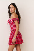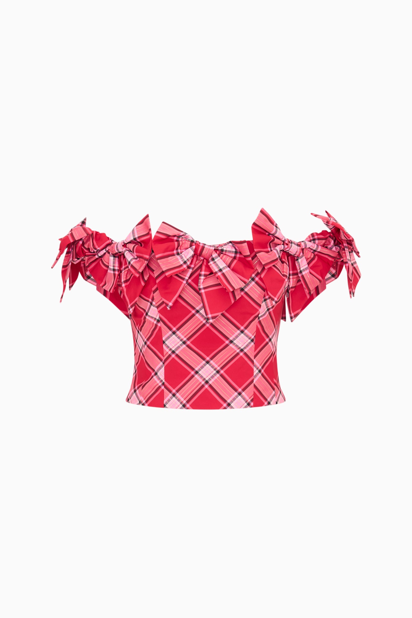 Romantic and statement-making, the Winston Top captures the magic of a holiday evening. Designed from rich taffeta fabric, this cropped off-the-shoulder silhouette features princess seams for a beautifully sculpted fit. Along the neckline, gorgeous bows are delicately placed, adding whimsical charm and drama. The elastic armbandsensure comfort and flexibility beneath the bows, while a hidden side zipper allows for a seamless finish.