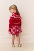 Introducing the Wrenna Cardigan. This charming cardi swoons a warm, soft fabric featuring a whimsical fair isle pattern with hearts and festive motifs throughout. The piece is finished with buttons down center front.